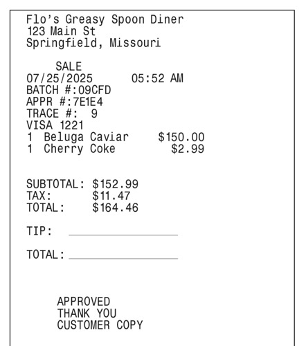 STOPPED_AT_CHECKPOINT status. That means the Meal Receipt app isn’t fully confident about some values it extracted from the receipt and wants a human to double-check the results. For this example, you can ignore that step.After running the program yourself, look at the JPG files for each receipt and compare them to the output. Do you see the values you expected? If not, or if you see error messages, see the Troubleshooting section below.